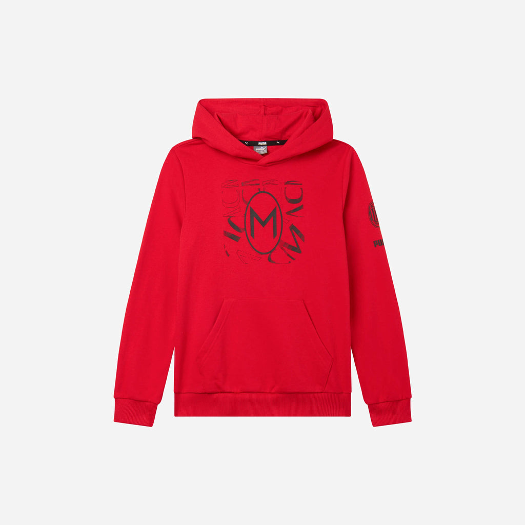 Felpa AC Milan da bambino con cappuccio e stampa frontale della linea Football Core.