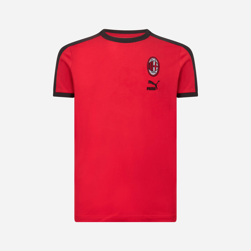 Esplora la collezione Heritage: una T-Shirt rossa con logo AC Milane e Puma.