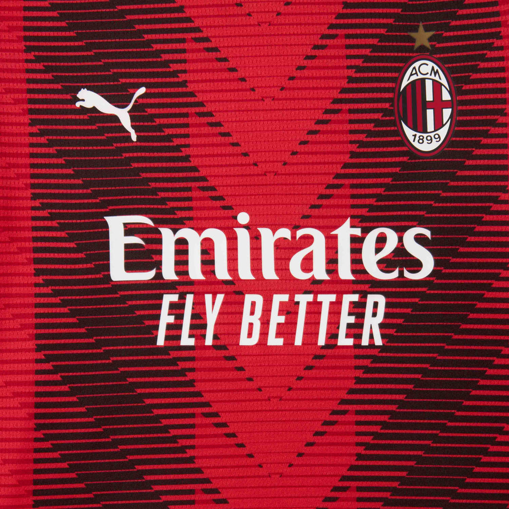 . Maglia con logo ufficiale AC Milan stampato sul petto a sinistra, logo Principal Partner Emirates™ stampato davanti, logo Puma stampato sul petto a destra